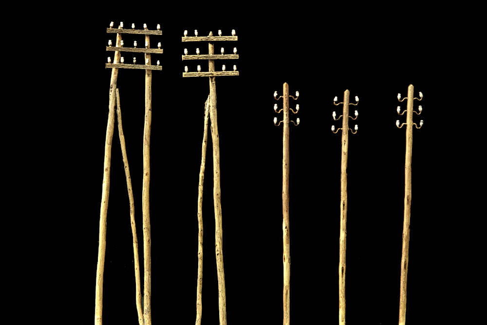 La confezione comprende n° 5 pali in ottone che riproducono i caratteristici pali telegrafici/elettrici sempre presenti lungo le linee ferroviarie.