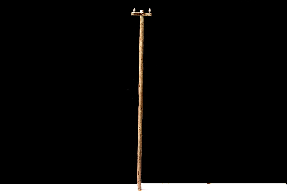 Palo telegrafico a due isolatori, realizzato in ottone. L’articolo è già montato e dipinto effetto legno.