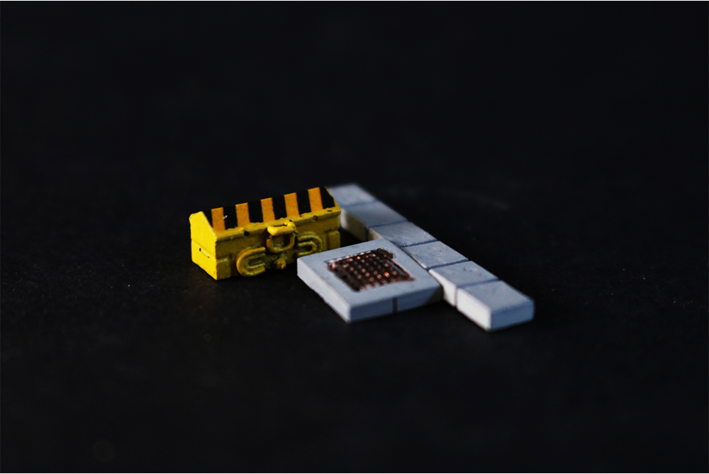 La cassetta e gli articoli della confezione sono riprodotti in ottone microfuso, proposti dipinti e rifiniti, pronti da posizionare.