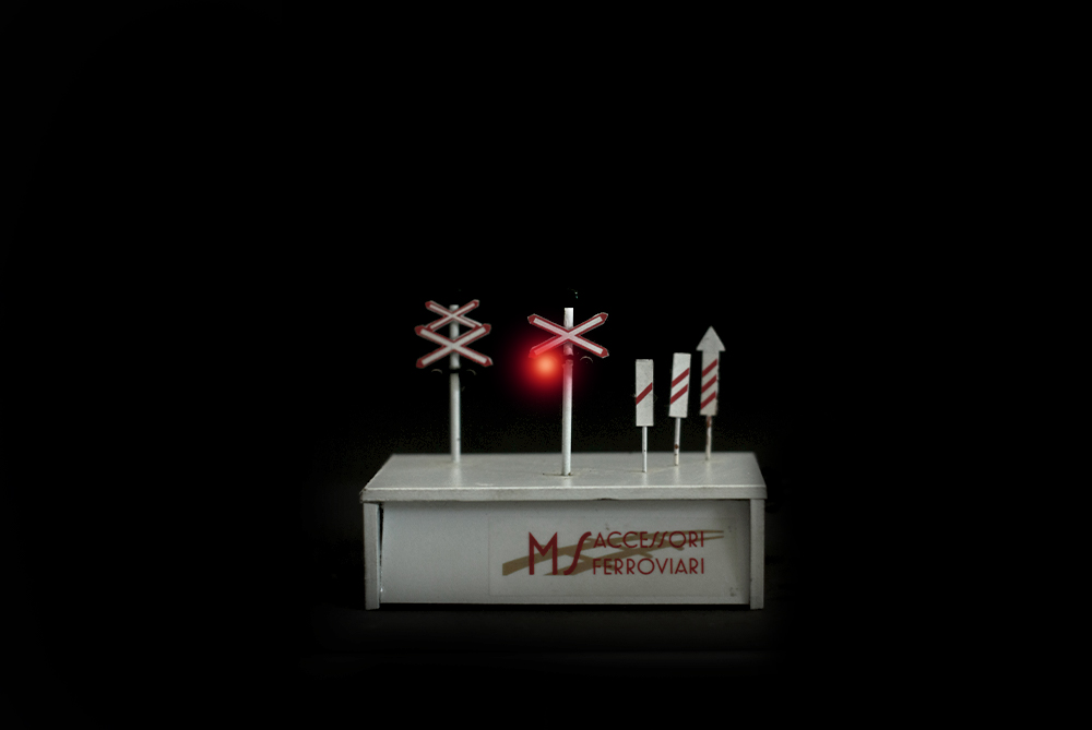 La confezione comprende 2 croci di S. Andrea e 6 cartelli di preavviso, forniti montati, dipinti e dotati di circuito per il lampeggio delle luci.