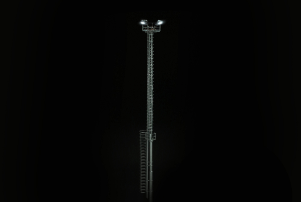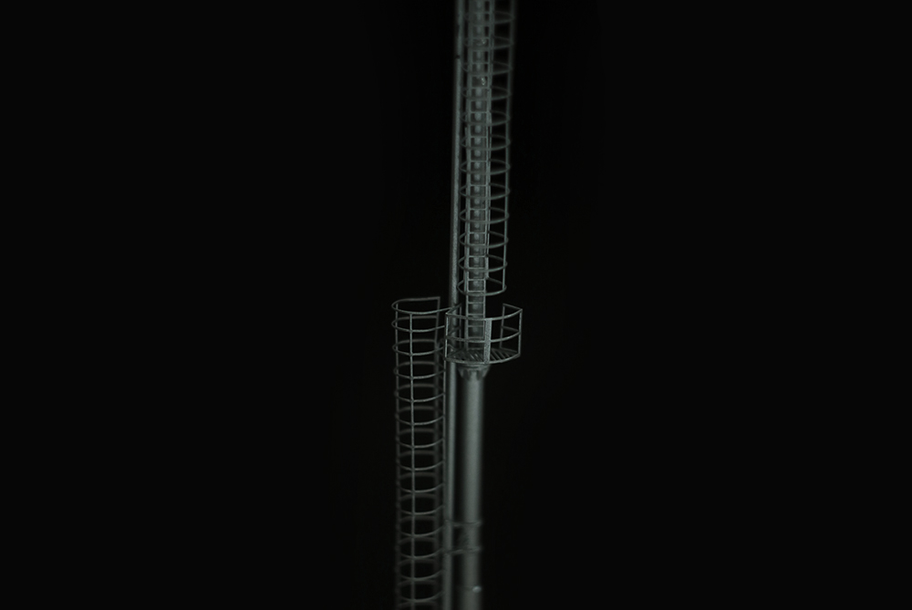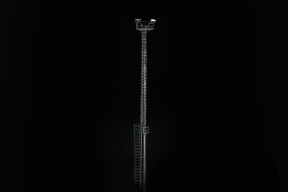 Riproduzione in ottone microfuso e fotoinciso della torre faro a struttura tubolare presente in stazioni minori e depositi.
