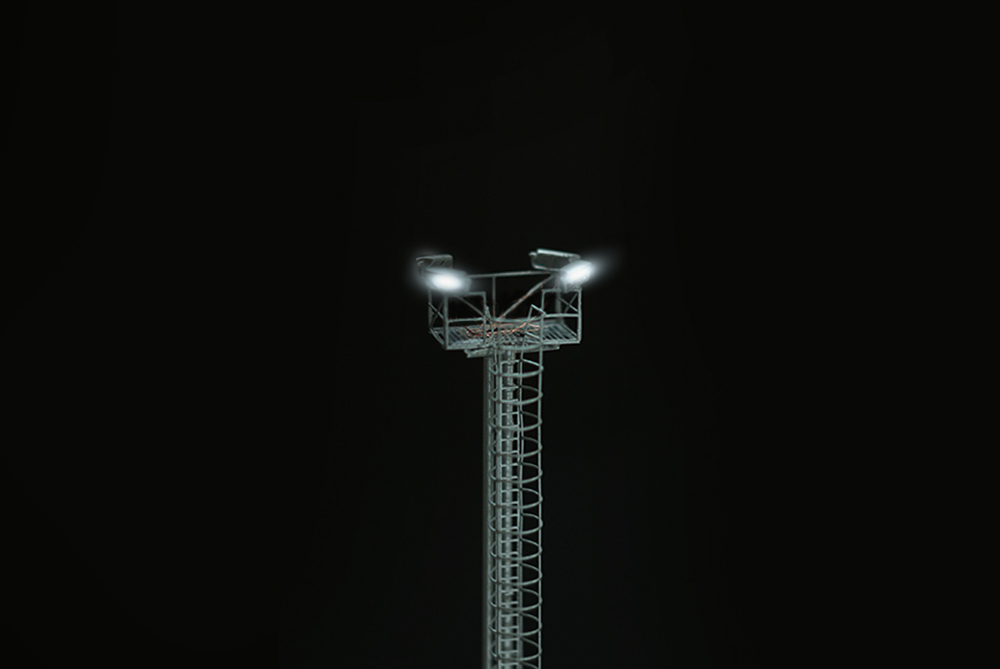 Il modello è alto mm. 270, è fornito montato e dipinto ed è corredato da n.4 fari rettangolari a luce bianco freddo. L’illuminazione è ottenuta con led SMD, la torre è già provvista di cablaggi e resistenza.