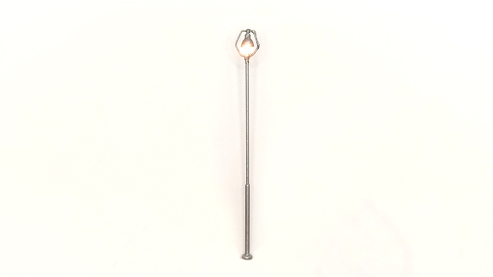 Lampione da stazione realizzato in ottone microfuso, illuminato da led SMD a luce gialla tenue.Altezza mm.70 ca., l’articolo viene venduto assemblato, verniciato e illuminato con la relativa resistenza già saldata.