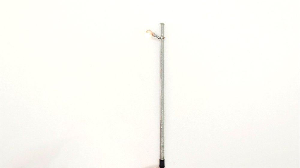 L'articolo riproduce in ottone microfuso il lampione con palo in cemento presente principalmente su strade extreurbane.