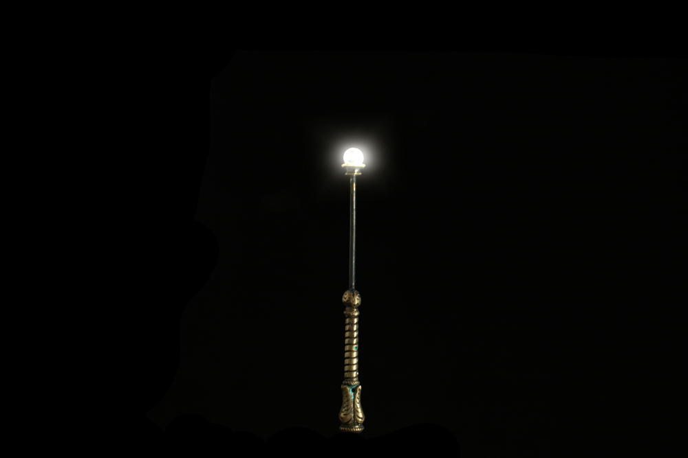 Il modello misura mm. 115,00 in altezza, luce bianco calda con resistenza già montata. A richiesta, per epoche successive, il lampione è fornito con luce bianco fredda.