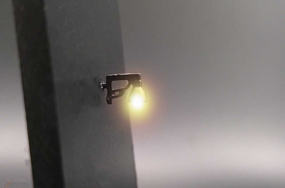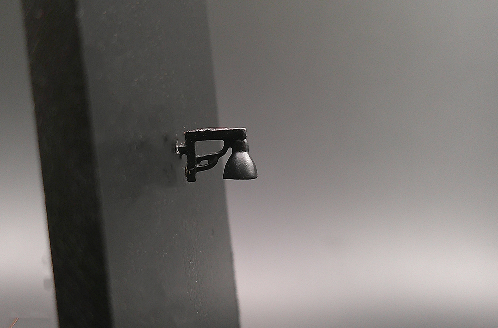 Luce a muro creata in microfusione di ottone. Illuminata da luce gialla tenue con led SMD.L’articolo viene venduto assemblato, verniciato in nero opaco e illuminato; la resistenza è fornita nella confezione.