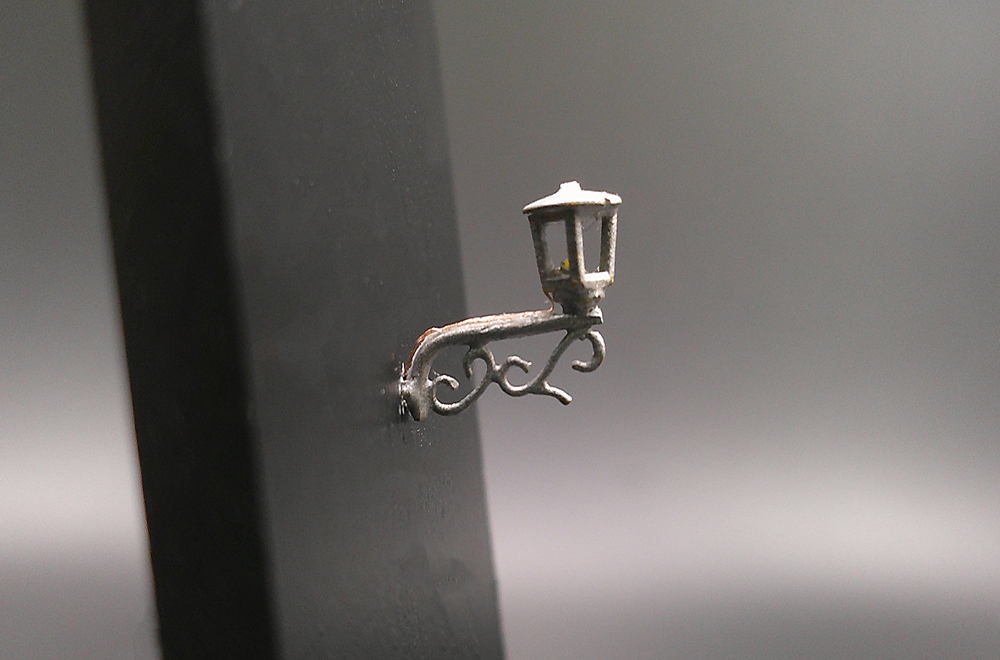 Luce a muro realizzata in ottone microfuso, illuminata da luce gialla tenue con led SMD, lanterna rifinita con resina trasparente effetto vetro.