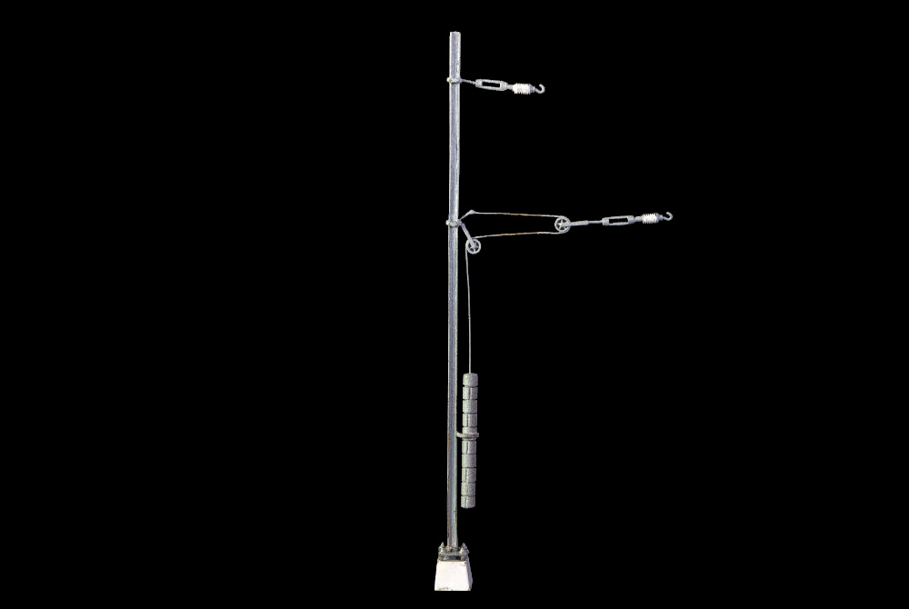 Reproduction en laiton et bronze tirée de l'un des poteaux plus utilisés dans le Chemin de fer rhétique, avec appareil tendeur. L’article est soudé avec la technique laser et peint. 1 poteau monté et peint.